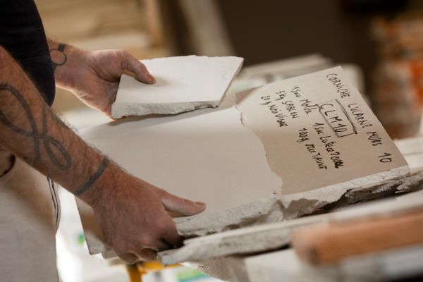 "Une vingtaine d’essais ont été nécessaires pour répondre précisément aux exigences du cahier des charges de l’Architecte du patrimoine ArchiTrav. Chaque gramme modifie la teinte ou l’aspect, demandant une attention extrême pour atteindre le rendu souhaité. C’est un travail de précision, presque un travail de chimiste pour trouver la recette parfaite !