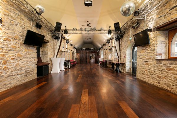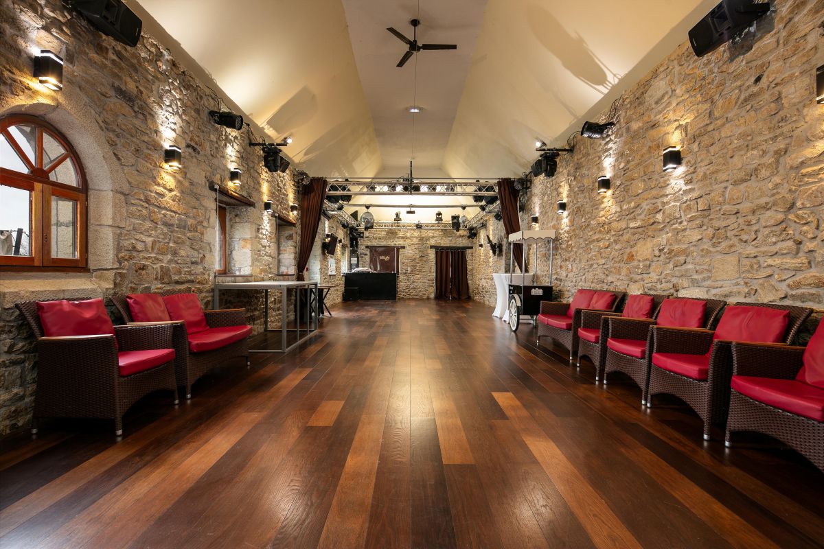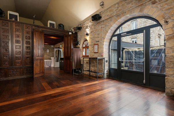 Le Manoir de Kerhuel, hôtel-restaurant 4* situé à dix minutes de Quimper, propose également l’organisation de mariages, de séminaires et l’accueil de groupes. Une personne de l’établissement a fait appel à lui pour rénover le parquet de la salle des mariages et du bar attenant, soit une surface de 150 m2. Le parquet en bois exotique, marqué par le temps et les impacts quotidiens des tables et des chaises, nécessitait une remise en état complète. L’intervention a dû être réalisée en une semaine, pendant la fermeture de l’établissement, afin de redonner au sol tout son éclat.