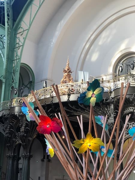 Ah oui, le dirigeable de Flying Whales, qui avait tant marqué le Grand Palais … de Lille, en 2023, au sein du Layon Guyanais. Autre histoire que ce layon… En tout cas, l’an dernier, la protection intumescente de la maquette du dirigeable n’avait pas été reconnue et donc pas question de le suspendre au garde-corps. Pour cette fois, le dirigeable a été ignifugé une nouvelle fois, l’accrochage est limite, mais finalement consenti. Il flotte et en plus il a son petit cousin placé sur une perche au dessus du stand de filière, estampillé Bois de France. Ainsi, la certification Bois de France marque son territoire non seulement dans les allées, au sol, mais aussi dans les airs, une solution logique une fois que l’on connaît ce lieu et la fréquentation de la mezzanine. Ainsi, petit à petit, le Forum au Grand Palais renoue avec les images du salon de l’aéronautique des années 20 et autres expositions internationales.