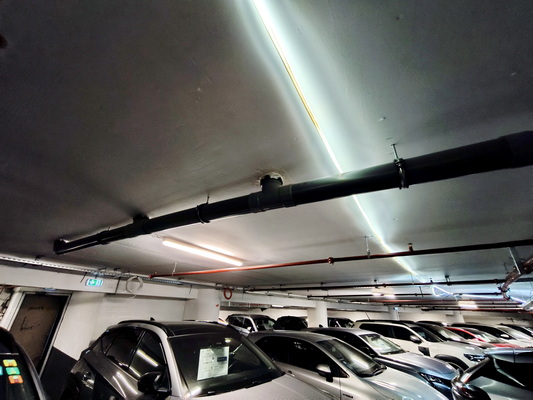 L’entretien du parking était négligé depuis des années. Comme le dit Alexis de l’Epine : "il était dans son jus depuis les années 70". Pour ses besoins, Lockall l’a complètement réaménagé. Les travaux de curage ont commencé en août 2025, dont le désamiantage. Une solution de désenfumage a été installée avec rejet au-dessus du bâtiment qui surmonte le parking. Des réseaux d’amenée d’air neuf ont été installés pour la ventilation. Tous les réseaux d’eau ont été déplacés au plus près des dalles, de manière à optimiser la place pour le stockage.