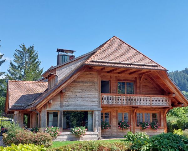La double-toiturre ventilée est une technique traditionnelle qui consiste à superposer deux couches : d’abord un écran de sous-toiture, étanche mais perméable à la vapeur, posé sur la charpente pour protéger contre l’eau et le vent tout en laissant s’échapper l’humidité, puis la couverture principale – tuiles, ardoises ou bardeaux – fixée sur des liteaux ou contrelattes, créant un espace ventilé entre les deux. Cette circulation d’air prévient la condensation, limite l’humidité dans la charpente et garantit la longévité de la toiture, un atout essentiel en zones montagneuses ou climats rigoureux. © Laure Pophillat