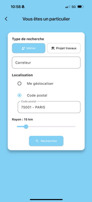 L’application Qualibat pour les particuliers permet de rechercher un métier précis, dans une zone géographique donnée. © Qualibat