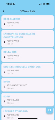 L’application génère une liste d’entreprises titulaires de la qualification correspondant à la recherche, puis les localise sur une carte. © Qualibat