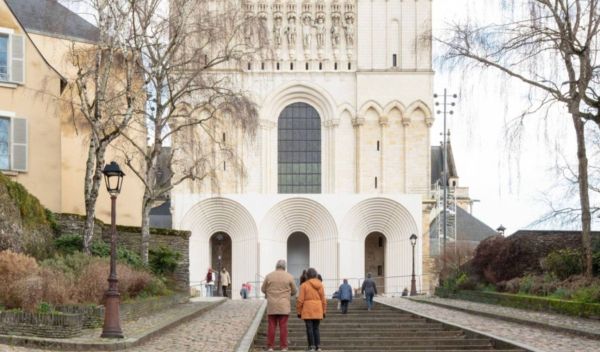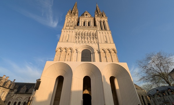 Aucune cathédrale n’est homogène, et celle d’Angers en constitue une illustration particulièrement lisible : sur sa façade se superposent des éléments bâtis à des périodes différentes, du XIe au XVIe siècle, traduisant une succession de strates architecturales et stylistiques. Dans cette perspective, l’ajout d’une galerie contemporaine ne constitue pas une rupture, mais s’inscrit dans la continuité d’un édifice dont l’histoire s’écrit par ajouts successifs.