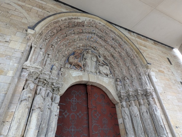 Conçue par l’agence de Kengo Kuma, la galerie – une galerie existait au XIIIe siècle à la même place, devant la cathédrale – adopte une écriture volontairement sobre afin de "ne pas concurrencer l’existant". Un parti pris dicté autant par des considérations esthétiques que par la fonction même de l’ouvrage, destiné à protéger le portail polychrome du XIIe siècle, restauré en 2019, qui est l'un des rares témoignages de la polychromie des cathédrales au Moyen-Âge.