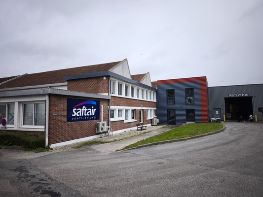 L’usine Saftair Ventilation est installée à en Normandie à Torcy-le-Petit, près de Dieppe (76). Nous l’avons visitée le 15 avril, en compagnie de Ludovic Dournel, le directeur commercial, et de Florent Nothias, le responsable technique et qualité. Sur un site de 21 600 m2, dont 8 800 m2 de locaux de production, 500 m2 de bureaux et 200 m2 de laboratoire R&D, l’usine fabrique 30 000 appareils de ventilation et de désenfumage par an et expédie 19 000 palettes/an.