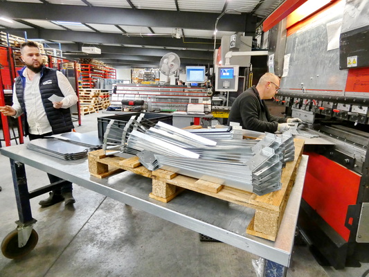 L’atelier de tôlerie approvisionne le montage des produits. Tous les composants nécessaires à la fabrication d’un produit sont rassemblés sur un chariot rempli par le monteur. Les monteurs sont polyvalents et assurent l’assemblage de différents produits, mais toujours à partir de leur poste de travail. © PP