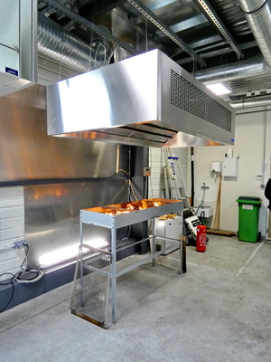 Le désenfumage et la ventilation de cuisines professionnelles répondent à la même norme NF EN 1210-3, mais obéissent à des réglementations différentes. Dans une usine de caissons de ventilation et de désenfumage, tout commence par un atelier de tôlerie. Ici, l’usine consomme 1 630 t de métaux par an, avec 30 % de taux de chute, et fabrique toute la tôlerie nécessaire à se production. Elle utilise des tôles en acier galvanisé, en acier galvanisé prépeint, en aluminium et en acier inoxydable de 0,8 à 4 mm d’épaisseur. Le stock de tôle assure dix jours de production. Toutes les chutes sont valorisées. Une même pièce de tôlerie peut être montée dans 4 à 7 produits différents. Dans un produit fini, la tôlerie représente 30 à 80 % de la matière.
