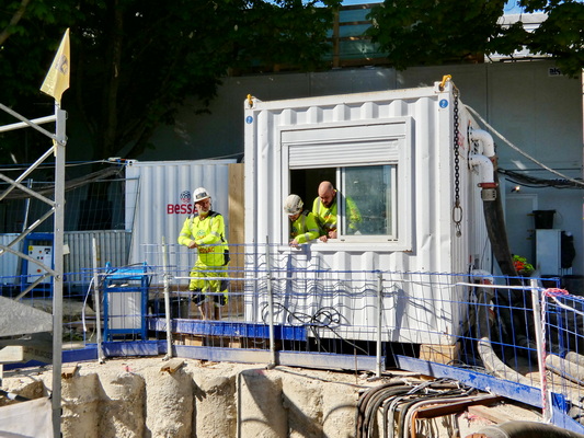 Le mini-tunnelier est filoguidé depuis la surface par un opérateur dans cette cabine de chantier. © PP