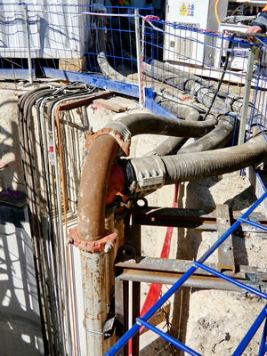 Les déblais de la galerie sont extraits par marinage hydraulique : de l’eau sous pression est envoyée dans le tunnelier et constitue une boue liquide. © PP