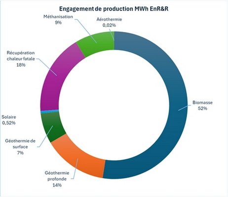 Opéré par l’ADEME depuis 2009, le Fonds Chaleur contribue pleinement à la croissance d’une production de chaleur renouvelable et de récupération souveraine, en complément d’efforts significatifs en matière d’efficacité et de sobriété énergétiques. Les aides Fonds Chaleur attribuées en 2025 pour alimenter habitat collectif, entreprises et collectivités permettront la construction de 643 km de réseaux de distribution de chaleur et de plus de 1 200 nouvelles installations produisant 3,5 TWh par an de chaleur renouvelable et de récupération.