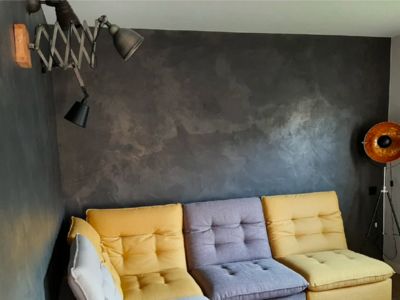 Rouviere Collection propose un enduit décoratif à effet béton ciré. Applicable à la spatule, son épaisseur totale est de seulement 3-4 mm, ce qui facilite les aménagements.