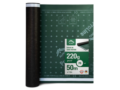 L'écran de sous-toiture ALMO 220g pose de nouveaux jalons dans la technologie des toitures grâce à sa structure à quatre couches renforcées par un treillis. Il offre non seulement une capacité de diffusion exceptionnelle (valeur Sd de 0,02 m) et une grande robustesse, mais aussi une excellente résistance à la pénétration qui répond aux critères stricts de la norme DIN 4426.