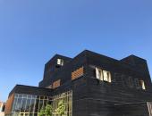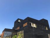 Le Centre Teilhard de Chardin, un centre spirituel au bardage en bois brulé, donne une âme au nouveau quartier universitaire Moulon sur le plateau de Saclay au Sud de Paris.