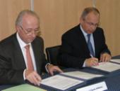 Jeudi 9 décembre, la Cramif, le Groupement des professionnels de la peinture et de la finition (GPPF) et l’Université européenne des métiers de la finition (UEMF) ont signé une Charte de prévention des risques professionnels sur le site de l’Université à Créteil (94). Pour mener ensemble des actions concrètes, notamment en matière de décapage. De gauche à droite : Claude Arrighi, ingénieur conseil à la Cramif, et Olivier de Mourgues, président du GPPF, tous deux signataires de la Charte de prévention des risques professionnels sur le site de l’Université européenne des métiers de la finition à Créteil (94).